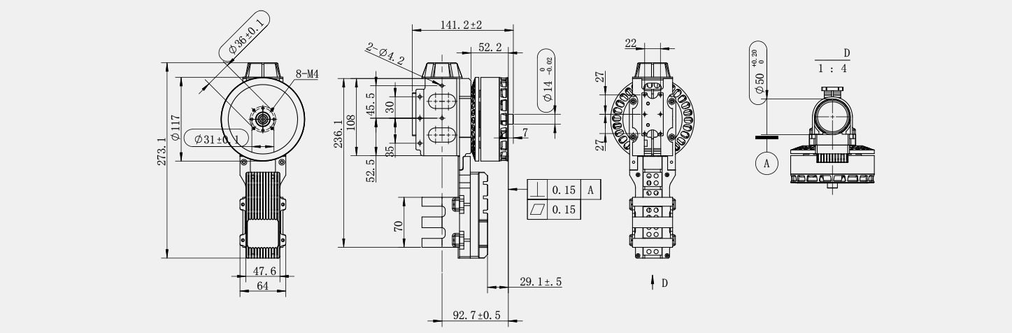 | 85 | 14S-18S | 37.5 | 15-18 | 2.85 | 146 | 50 | φ116*42,5 | φ108*2 | 8-M4*10 | 43" |